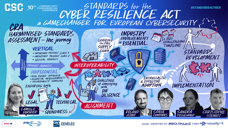 A dedicated session focused on the role of standards in supporting the implementation of the Cyber Resilience Act. Experts discussed the timeline of CRA standards, the interplay between the CRA and other legislative acts like NIS2, the Digital Operational Resilience Act (DORA), and eIDAS, and the broader impact of the CRA on cybersecurity practices across industries.
